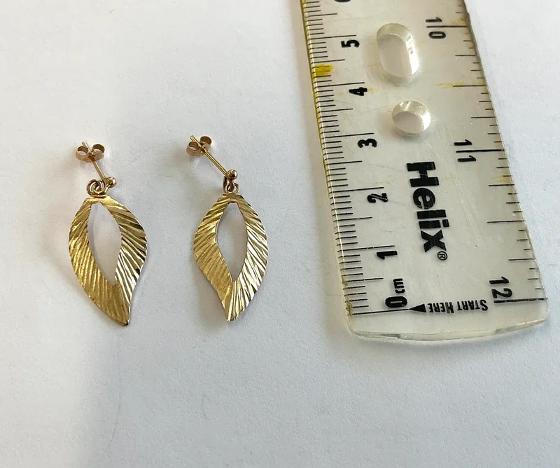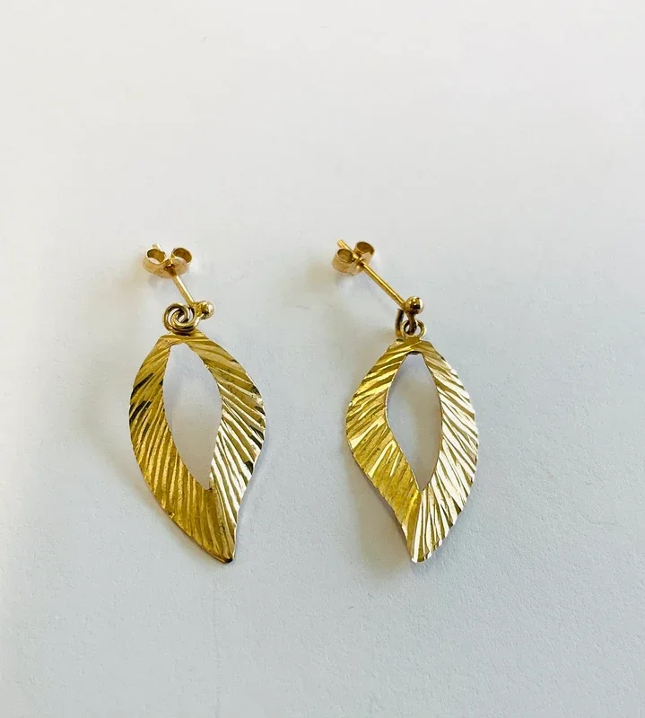 9ct DROP & DANGLE OPENWORK FEATHER STYLE EARRINGS 0.7g