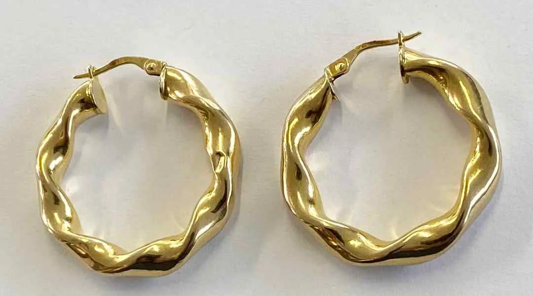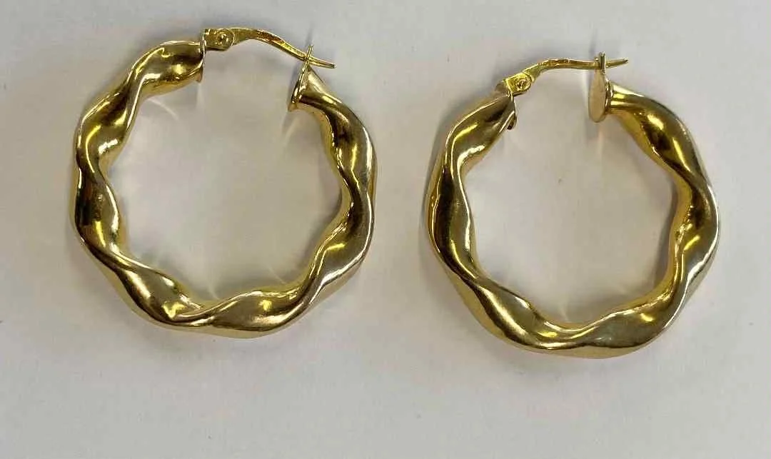 9ct YELLOW GOLD QUALITY LARGE SPIRAL HOOP EARRINGS LEVERBACK 3.54g